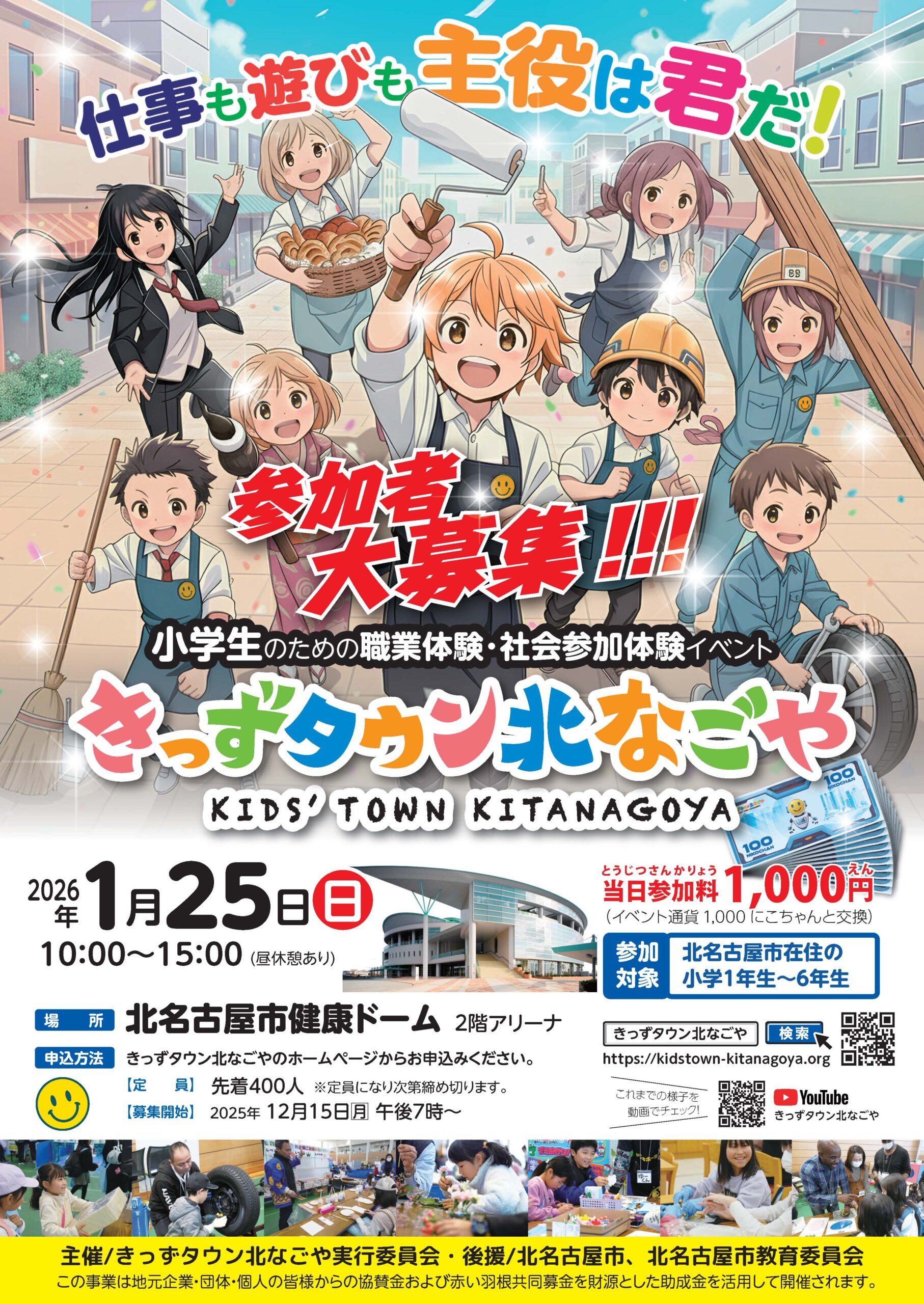 2026年の「きっずタウン北なごや」開催に向け、今年の参加者募集チラシが完成しました!